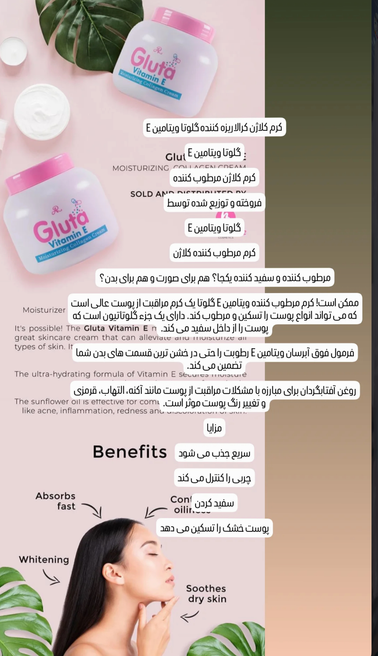 كرم سفيدكننده و مرطوب كننده گلوتا حاوى كلاژن هيدروليز شده