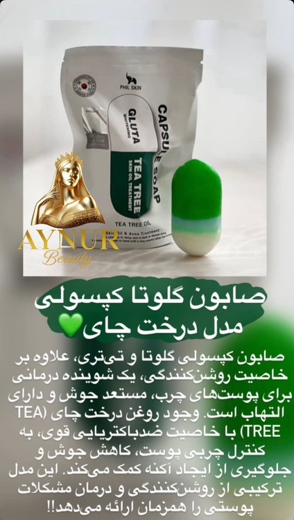 پوست هاى چرب مختلط و مستعد آكنه(صورت و بدن) درباره صابون كپسولى درخت چای. حاوى گلوتاتیون براى كمك به روشن تر شدن پوست غنى شده با روغن درخت چای باخاصیت روشن کنندگی و ضدباكترى و ضد التهاب كنترل چربی اضافى پوست كمك به كاهش جوش و جلوگیری از ايجاد آكنه پاكسازى عميق منافذ مناسب براى پوستهاى جرب و مختلط كار برد هاى اين صابون: • مناسب براى يوستهاى جرب و مستعد جوش